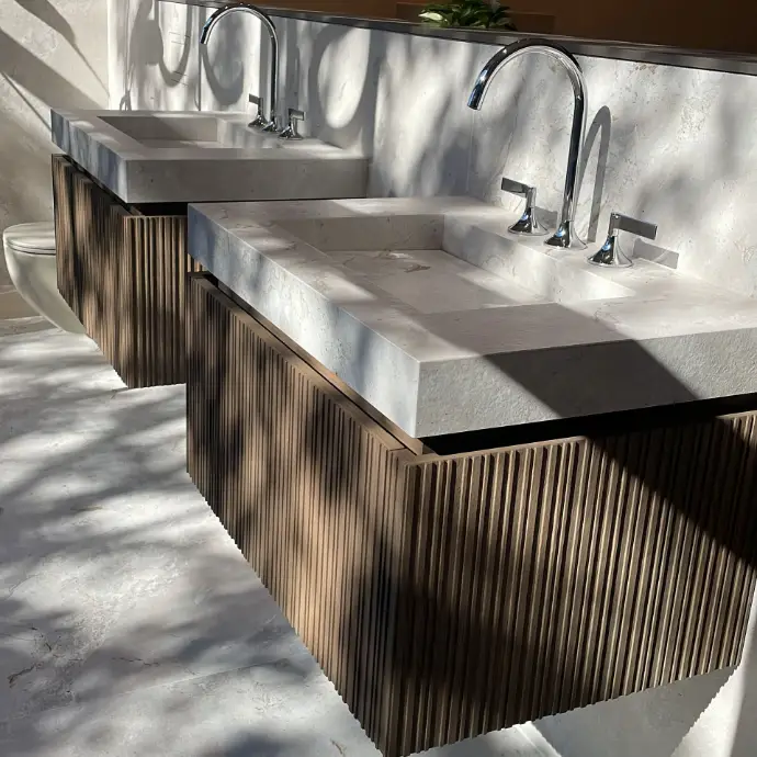 Med lokal produksjon i Norge og sterke samarbeidspartnere som bl.a Margraf, Sapien Stone, Ariostea og Terza Dimensione, kan vi tilby et uendelig spekter av materialer og løsninger. Dette gir oss fleksibiliteten til å levere alt fra små, unike oppdrag til store og komplekse prosjekter – alltid med fokus på kvalitet og presisjon.